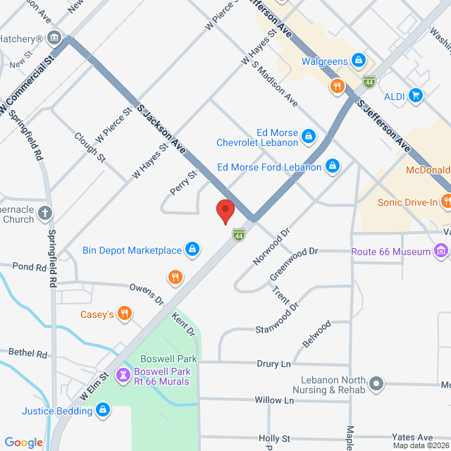 Located on Elm Street in Lebanon, MO. Exit 127 off I44. There is parking in front and also on north side of building.